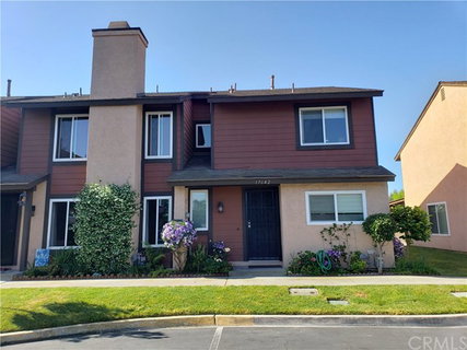 Gated Community, Windward Terrace, End Unit with one Commonwall, One of the Best Location in the Complex. Enjoy the Green Grass Side Yard as an airy inner unit. This Beautiful Home Boasts 1,254 S.F. The entry is open and airy with a cozy fireplace and laminate wood flooring on all floors upstairs and downstairs. All dual pane windows. Includes a tiny extra room downstairs. Ample dining area. Both Large Master Bedroom with its own large bathroom with a vaulted ceiling and 2nd bedroom with its own bathroom are upstairs. There is a 3rd bathroom downstairs for guests. Large laundry room with ample storage cabinets conveniently located upstairs between two bedrooms. Sliding glass doors with access to the patio. Enjoy entertaining in your private backyard and side glass yard or bring the party to the built-in Spa with a relaxing patio area. Easy access to Fwy 91 and 605 and all entertainment and shopping malls nearby, like Lakewood or Cerritos shopping malls.