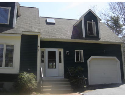 Great homeownership opportunity--Own your half of this cape style duplex situated in a private setting offering low condo fees. Freshly painted and some updating flooring. Two large bedrooms, spacious kitchen w/lots of cabinets, formal dining room w/sliders to rear deck.The deck leads to a large backyard for fun family and friend gatherings. Expansion possibility to finish basement: Storage shed & 1 car attached garage.