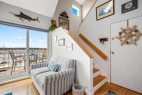 Outstanding Harbor Views and Location…TUCK POINT…Beverly’s premier OCEANFRONT condominium complex! This tastefully updated, 2 bed/2 bath townhouse boasts dramatic, open living space with vaulted ceiling, fans and skylights. The first floor features stunning, coastal influenced, custom kitchen w/breakfast bar and dining/living area with adjoining balcony boasting spectacular harbor and sunset views. There is also a bedroom & full bath on this level. The second floor master suite features a loft, spacious bedroom with bath. Numerous updates throughout! Additionally, the semi-private garage under offers extra storage. You’ll enjoy watching the activity on the harbor, the marinas and at the onsite pool. Just a 2 minute walk to a sandy beach, public boat ramp, marinas and Jubilee Yacht Club. Restaurants, beaches, parks, commuter rail and Salem are all nearby. Relax and enjoy the harbor activity and this great Seaside Lifestyle!