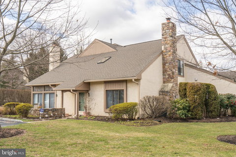 Just Start Packing and move in to this beautiful spacious end unit townhome in desirable High Gate in Blue Bell! Enter in to the foyer and to the left you'll see a carpeted living room with a fireplace, tons of natural light from the big windows and skylight and a tall ceiling. To the right of the foyer you will find a den that can be used as an office as well. Keep walking pass the den and you will find a formal dining room with gleaming hardwood flooring and another fireplace and sliding glass doors to a porch and barbecue area that includes a standalone gas line for a grill. The full kitchen has a double sink, dishwasher, refrigerator, range/oven and an island where folks can gather for a great meal. Off the kitchen is a laundry room and in the other direction is the door to the built-in garage. Beyond the kitchen is a big first floor master suite with recessed lighting, plenty of closets and a garden tub separate from the shower in the master bathroom. Upstairs you will find two additional nice sized carpeted bedrooms, each with it's own walk in closet. The hall bath is spacious as well. Off of the upstairs hallway, there is an additional storage space for you to utilize. In front of the home, there is a deck where you could entertain in the spring and summer. The garage has an opener for your convenience. Close to plenty of shopping and amenities, this home needs to be on your list to see!