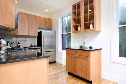Incredible sun drenched two bedroom/one bathroom home! Pristine condo boasts glorious south and west exposures. Bow-front living area with 9' ceilings showcases five windows, flexible open floor plan with room for dining, and gleaming oak floors. The master and second beds are both roomy and make for a comfy, private retreat. Well-equipped dream kitchen has gas cooking, black granite countertops, stainless steel appliances, handsome cabinetry, and substantial storage. Modern bath featuring it's own window and beautiful dark blue floor tile. This unit is in a stand alone four unit, professionally managed building and offers central air, in-unit laundry and a common roof deck with city views for your enjoyment. Located a stone's throw from Toro, Seiyo, and Mike's Diner. Move-in ready. Just buy the key!