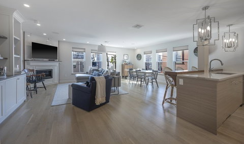 Nook Hill, a 2018 new construction luxury building is situated on the west side of South Boston. This bright & sunny sprawling floor though home features 4 beds & 1,800+ sqft on 1 level w/ direct elevator access & garage parking. The floor plan offers the ideal, wide open kitchen, living dining layout w/ oversized windows & a gas fireplace, perfect for entertaining. The custom chef’s kitchen boasts Thermador appliances, quartz countertops, 6 burner gas stove & a large island w/ seating for 4. Beautifully designed custom woodwork adds flair to the expansive, comfortable living space featuring a gas fireplace w/ custom marble surround & mantel as its focal point. The sumptuous master suite offers king sized bed wall & stylish spa-like en-suite bath w/ steam shower, digital controls & TV embedded in mirror. A common outdoor patio with kitchen & grill; central A/C; hardwood floors, recessed lighting & built-in surround sound throughout; deeded storage & walnut doors complete this offering.