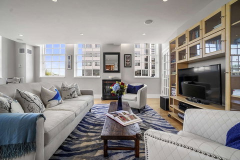 Living by the water is a lifelong dream for many. Enjoying the sun rising and setting, and watching sailboats pass are luxuries with vast emotional benefits within a busy, modern lifestyle in the city. This immaculately designed corner penthouse duplex at the Charlestown’s historic Basilica Condominiums offers the best of many worlds. The building has recently had a complete and spectacular renovation in 2019. This home with two levels of generous living offers a fine layout, the perfect flow and volume, as well as stunning views of the Boston Harbor from its loft-sized picture windows and a private balcony. High ceilings, an open kitchen and living room, and the dramatic custom staircase make it perfect for entertaining. Features include gleaming maple floors, elevator and garage parking. Minutes to downtown Boston by car, boat or a short walk, near parks, daycare, swimming pool, gym, public transportation and major highways, this unique residence is simply gorgeous and convenient!