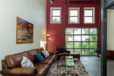 Delightful and unique building, nondescript on the outside, bursting with charm, style and an artistic atmosphere on the inside. 2 lvls of living space with large common foyer is inviting and spacious. It feels like you are in an art studio! Enter space through grey steel double door, once inside, you are surrounded by light and height. Soaring ceilings with wall of windows lets in natural light, all glass garage door opens to the RIVER with potential for private deck. Custom stairway throughout space, winds through to bring you to a large loft bedroom, then 2 private bedrooms. Modern bathroom with glass shower door, copper ceiling and sleek tile. An absolutely enchanting condominium. OPEN space allows for huge dining room table, living room and family space. Separate bedrooms, both with access to private roof deck. In-unit laundry. Parking. Walk to Hyde Park commuter rail T, short ride on the train to Back Bay & Downtown. Close to Blue Hills Reservation.