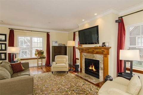 Beautifully crafted residence by renowned Maple Hurst Builders hosts impeccable design, construction and custom woodwork providing a rare sense of depth and character. A classic home designed for contemporary living, the open floor plan offers a splendid formal Living Room and Dining Room, cook’s dream Kitchen in cherry, granite and high-end stainless appliances with gracious dining indoors or outdoors on the mahogany deck. Upper floor yields a Master Suite with luxury Bath in marble and glass and maple walk-in closet; plus an additional skylit Bedroom and Bath. Includes artisan-built gas fireplace, Brazilian cherry floors, generous windows, wainscoting, crown molding, columns and stained glass. Features green construction, state-of-the-art systems, central air, in-unit laundry room, plentiful storage and direct-entry garage parking. Nestled amidst the natural wonders of trees, rock outcroppings and adjacent to Boston’s largest park, look no further.