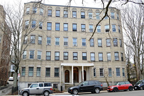Top floor corner unit in turn of the century brick building with elevator. A short walk to Cleaveland Circle, stores, restaurants, Reservoir, and B,C,& D T line. Very spacious and sunny unit with upgrades: recessed lighting, Coffered ceilings, updated tiled bathroom, newer eat in kitchen with Cherry cabinets and Brazilian floor, Soap Stone counter tops, Stainless Steel appliances and River Stone back-splash. The spacious foyer has gleaming Maple floors, built-in book shelves, wainscoting, and 9' ceilings. Spacious bedrooms with large windows gives tons of sunlight. Great closet space and additional storage space in the basement. Pet friendly building, common laundry. Rental parking available. Low condo fee, professionally managed building with many recent improvements which include, new furnace and roof. Pack your bags and move right in. Not to be missed.
