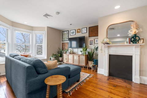 Nestled on a charming gas-lit street in the heart of town center, this bright and inviting top-floor condo offers 813 square feet of thoughtfully designed living space. Featuring two bedrooms and a newly renovated full bath with radiant heat flooring, this home seamlessly blends classic charm with modern updates. The spacious living and dining area is perfect for entertaining, boasting custom built-in window seat, a decorative mantel, and stunning views of...