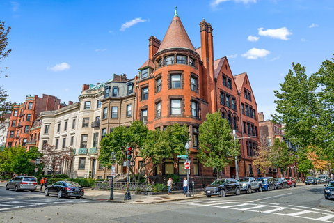 Charles Francis Adams brownstone on sunny side of Comm. Ave. Occupying the entire parlor level, this corner residence has 10’ ceilings, oversized windows, original details & deeded parking. Expansive living/dining area w/ original bay windows & casements, grand fireplace, custom built-ins & moldings. Handsome hardwood floors in herringbone throughout. Kitchen w/ granite counters, Viking/Sub Zero appliances & gas cooking. King-size master w/ fireplace - original iron paneling w/ Adams family insignia - ensuite bath & multiple closets. Second bedroom w/ custom built-ins. Third bedroom is sunken w/ bay windows & dual closets. Full bathroom between bedrooms. Flexible floor plan can be converted to 4 bedrooms. Central Air. One deeded parking space & private storage. Originally designed by Peabody and Stearns in 1886, 20 Gloucester is a professionally managed, pet-friendly, elevator building. Steps to the best shopping/dining in Back Bay, Charles River and major transportation.