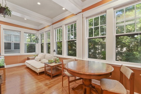 Wonderful opportunity to own a 2-bedroom co-op unit at "Park Vale Cooperative", a pet-friendly association on a quiet street in the heart of Allston Village. Bright and airy, this unit features high ceilings and hardwood floors throughout, with sun streaming in from three exposures (East, West, and South). Enter by way of the dining room, which is graced with beautiful period details including a decorative fireplace and original moldings. Enjoy the thoughtfully designed chef's kitchen, featuring Wolf gas range & griddle, Subzero refrigerator, soapstone countertops, and high-end cabinetry. The one-of-kind heated sunroom features walls of large windows looking out over the leafy neighborhood. Other amenities include in-unit washer/dryer, ample personal storage unit in the basement, lovely shared backyard featuring a picnic and grilling area, and guaranteed off-street parking. New roof in 2015. Property Taxes are included in the HOA fee