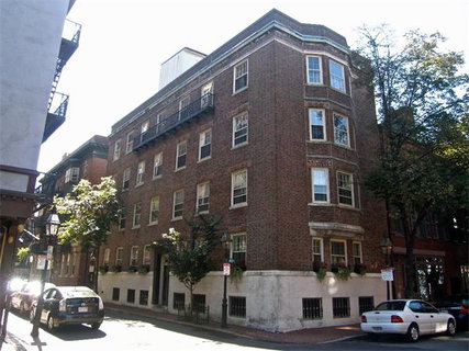 Coveted location on the Flat of Beacon Hill. Move right into this lovely two bedroom, two bath parlor duplex. Corner living room with fireplace flanked by two paladian glass-front closets. Cooks kitchen features S/S appliances, built-in desk and pantry. Marble accented full bathroom. Wrought iron staircase down to the Master bedroom with fireplace and four closets. Ample second bedroom. Full bath with tub/shower with glass tile. Wood floors. Common roof deck. Prof. mgd. 8-unit assoc.