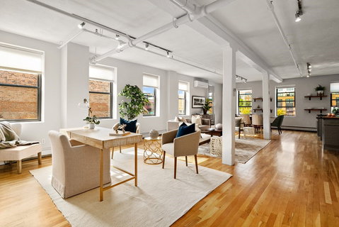 Located in the vibrant and ever-expanding SOWA district of the South End, this chic 2 bed/2 bath industrial loft style home boasts an unusual 1490 sq ft, all on one floor. The floor through, with flexible layout & corner exposure, has an expansive and open living/dining/kitchen/office space w/ hardwood floors throughout. Accentuated by high ceilings & exposed beams/pipes/columns, the home features a modern kitchen with stainless steel appliances, granite ...