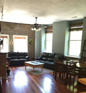 A MUST SEE: Open & spacious loft like condominium home. Sundrenched (s/w exposure) dramatic with soaring ceilings & freshly painted 2 bedroom corner unit boasting over 1000 sq. ft. Totally redone in 2010. Highlights include: new windows, Brazilian Cherry floors, wood fireplace, exposed brick wall length of living room and dining room, as well as exposed brick wall in large bedroom. Luxuriously updated bath, tiled & radiant heated floor, granite surface on custom wood vanity, surround tile walled tub with shower and granite seat. Eat in kitchen with all wood cabinetry, stainless steel appliances, granite surfaces and glass backsplash. In unit laundry room with front loading units, access to additional storage area from kitchen and central air conditioning. Elevator building. Public transportation, park, shops and restaurants are steps away.