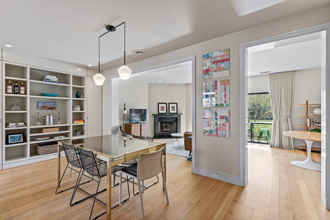 Charlestown waterfront 2 bedroom, 2.5 bath townhouse at Shipway Place in historic Navy Yard. This sun-drenched duplex offers an exceptional design w/ an open floor plan, high ceilings, hardwood floors, a wood-burning fireplace & sliding doors that lead to a private deck offering harbor & city views. Tastefully designed w/ entertaining in mind, the open kitchen offers a full height greenhouse window, extensive storage options, S/S appliances & Corian counters. Beautifully designed millwork & custom built-ins w/ frameless door details, define the living & dining spaces. The primary bedroom suite enjoys cityscape panoramic views, a luxurious bath w/ glass shower, soaking tub & a walk-in closet with ample storage. The spacious guest bedroom suite incl. a full bath & walk-in closet. Washer & dryer in unit & additional storage space. A private oasis in the city with direct access to the waterfront, Harbor Walk, Marina, neighborhood conveniences & Downtown Boston. Two Garage Parking Spaces.