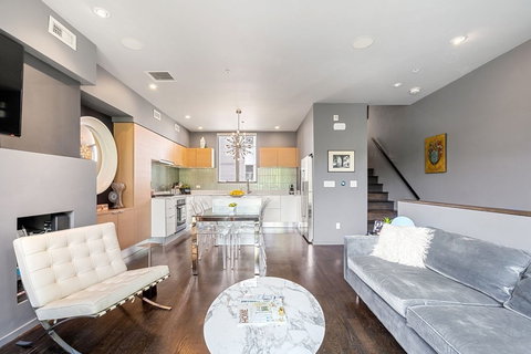 This 4 story townhouse designed by renowned architect Utile Inc offers residents the comfort, privacy and exclusivity of a single family home, while enjoying city life. Enter through your 2 car garage or front door to a mudroom/laundry area. Proceed up the stairs to the open concept, sun filled living, dining, kitchen areas with floor to ceiling windows, motorized shades throughout, nest thermostats and gas fireplace for control of your environment.The custom chef's kitchen designed by Italian designer Aster Cucine, has a nickelback glass backsplash, updated Bosch SS appliances, Caesarstone counter tops and ample built-in cabinetry. At the top of the stairs is a gorgeous Hermes orange half bath, a king size master suite with bath and fabulous closets.On the top floor is another king sized guest bedroom and bath with sliders leading to a private deck, a wine fridge and more closets. This home is sophisticated, beautifully crafted and centrally located to all SB has to offer.