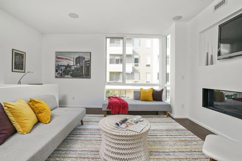 Kick your shoes off and we guarantee you will feel right at home the moment you enter this townhouse. Your very own oasis within the city limits! Lives like a single family with a private entrance and attached TWO car garage but with the convenience of a condo association. These homes were designed by famed architect Utile, Inc offering three bedrooms and two full bathrooms. The European style kitchen was masterfully designed by Aster Cucine with Bosch stainless appliances and Caesarstone countertops. Hardwood floors throughout. A cozy gas fireplace in the living room is perfect for cool nights! A unique cable system doubles as a wall in the stairwell allowing for abundant natural light. The third floor has two bedrooms, a white marble bathroom with double sinks & sliding doors to offer privacy for guests separating toilet & shower. The light-filled, fourth floor is home to the master bedroom oasis complete with an en-suite bathroom. Owner upgrades throughout. Washer/dryer in-unit.