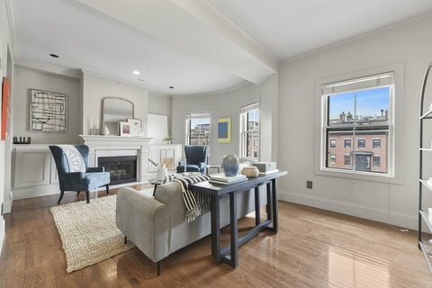 OPEN HOUSE CANCELED - OFFER ACCEPTED. Welcome to this beautifully laid out 3+ bed, 2 bath penthouse duplex complete w/ a private deck & 1 full parking. The perfect blend of classic charm & modern finishes, this home offers a spacious living room w/ decorative fireplace & built-in storage. Continue on to the kitchen featuring SS appliances, ample cabinet storage & a peninsula with room for 2 barstools. The desirable open kitchen layout extends into the dini...