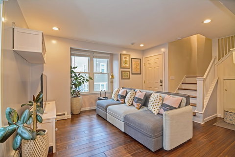 Wonderful two-bedroom condo on two levels! An urban oasis, located at the end of a quiet cul-de-sac, wooded location. This beautifully updated condo has a private entry leading into the living room and dining area. The kitchen was just updated and is a cook's delight, it has updated appliances and quartz countertops. There is also a fully renovated bathroom, and two spacious bedrooms, in-unit washer/dryer, new high-efficiency, on demand navien heating system, private parking (plus two association guests spots) and access to a lovely large, private patio area. It is 0.4 miles from the Green and to the Forest Hills T stations. Central Jamaica Plain and the Washington Street corridor are both close by as well as local playgrounds and the Scagnoli-Nihill Athletic Fields. Come see this special property! Please first tour the property website with property video tour and matterport photos.