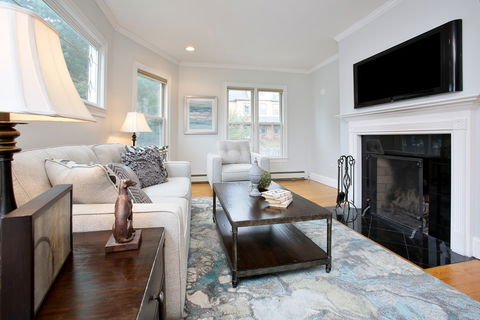 Tastefully updated two bed one bath open floor plan condo with tons of sunlight and lots of space. The bright and cozy first floor unit offers around 1200 square feet of living space featuring a wood burning fireplace in the living room, room for a home office, and a formal dining area. The kitchen has lovely wood cabinetry with granite counter tops and stainless appliances. Just off the kitchen is a walk in laundry room with washer dryer. There is ample closet space in both bedrooms as well as additional storage/coat closet off the living room and storage unit in basement. If you are in the mood for a nice little stroll through the neighborhood, you can check out any number of local coffee shops or restaurants in Peabody Square or Ashmont Hill.