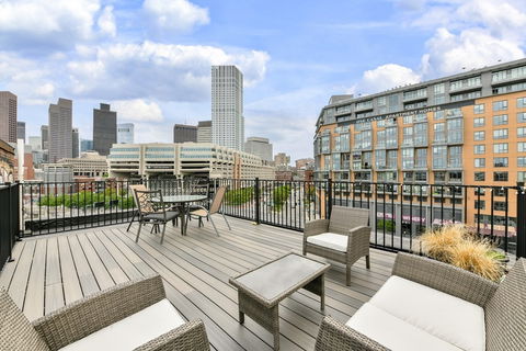 Attention Investors! Could the location of this property get any better? Rarely available 2 bedroom, 1 bathroom corner penthouse condo with views of Downtown Boston out of every window! This place has exactly what you've been looking for - incredible ceiling height, hardwood floors throughout, central AC, an open concept floor-plan, a private roofdeck only one flight up with a grill, laundry in-unit, private storage in the basement, and the list goes on! The kitchen is perfectly situated and comes with stainless steel appliances, granite countertops, and plenty of cabinetry. The bedrooms are both equal in size and have ample closets. The bathroom is large, clean, and has a working jacuzzi tub. Head in any direction out of the building and you're due to hit one of Boston's best restaurants and transportation outlets. This unit is not to be missed!