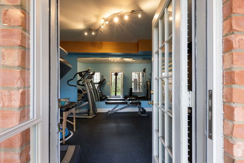 Dreaming of a private home gym? This home features an awesome gym with patio doors that open directly to tranquil green space and a babbling creek—a refreshing backdrop for yoga or any workout. The interior offers three comfortable bedrooms, a spacious kitchen, and a beautiful two-sided fireplace that connects the kitchen and great room for a warm, inviting flow. A perfect blend of comfort, convenience, and peaceful living. Check out the deck with patio table and chairs. Included is a direct connect gas grill with cover. Fresh Paint and Ready to Move in! NEW 2.5 ton AMERICAN STANDARD HVAC UNIT!