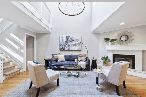 Rare to market home available in tucked away, sought after Brookhaven Woods, a boutique style community within the best location of Brookhaven! Fabulous, modern vibe in this gorgeous, completely renovated 3 level home having a kitchen-level garage and private fenced rear yard. Pretty landscaped front yard invites you into an open concept home with a fireside Great Room and hardwood flooring, dramatic ceilings, a stunning chandelier and staircase, leading to an awesome contemporary open kitchen with stainless appliances to include a Fisher & Paykal duel dishwasher, stone countertops and subway tile backsplash. A plethora of cabinetry and countertop workspace plus a long breakfast counter seats four and opens directly to the large dining room with handsome Restoration Hardware light fixture. Enclosed sunroom off the main living area with new Moda flooring, is wonderful flex space all year long with pretty views, perfect for home office. Lovely renovated powder room and convenient, stepless garage entry, complete the main level. Sleek staircase to 2nd to level has an installed carpet runner, hardwood flooring throughout and dramatic views overlooking main level living area. Oversized primary suite has vaulted ceilings, pretty views, walk in closet and opens to a incredible marble spa bath with double vanities, built in floor to ceiling custom cabinetry and a beautiful glass frameless shower with seating. A secondary spacious ensuite bedroom with walk-in closet and laundry (including w/d), complete the top floor. Terrace level has custom epoxy flooring, walk-in closet, ensuite 3rd bedroom and all leads out to a private rear yard and patio enclosed by a newer fence with gate. Perfect for pets, gardening, and entertaining! A few add'l improvements include: New roof, new garage door, several window replacements, newer upper level AC. The location simply can't be beat. Neighborhood walkability, minutes to hotspots on Dresden (Verde Taqueria, The Ashford and Haven). New Langford Park is only 2 blocks and Marta is less than 2 miles. Easy access to 400/85. The best of the best!