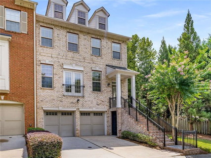 seating, white cabinets, stainless steel appliances, new lighting, all bathrooms renovated. The first floor has a 2 car garage and a large FLEX ROOM with newly renovated full bath perfect for a guest room/office or media room. The main level has high ceilings, large windows that flood natural light into the living room which is open to the dining area. The dining area is showcased by a double sided fireplace that also is featured in the kitchen/breakfast area. The bright new kitchen is open to a large breakfast area great for hanging out and working on your laptop. Just outside is a deck that looks onto trees (instead of other units). Upstairs, you'll find a beautiful large Primary Suite with hardwood floors, tray ceiling and recessed lighting. The renovated Primary Bath features white marble porcelain tile, free standing jetted soaking tub, separate shower with glass surround, double vanity with quartz countertop, undermount sinks and black hardware/plumbing fixtures. The large walk-in closet has custom designed closet system for organization. Two other bedrooms upstairs share a nicely renovated bathroom. The community pool is so close to this delightful end unit - just a few steps and is only 1 mile away from Brookhaven Village with restaurants and shops.