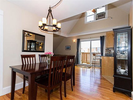 This stylish top floor 2+BR is sure to please. Fabulous kitchen glistens with granite counters, backsplash with inlay border, stainless steel appliances, custom cabinetry & breakfast bar! Open floor plan has separate dining area & living room. Family/playroom with in-unit washer/dryer has built-in cabinets. Top floor is a perfect getaway for office/guest bedroom. Rear deck with treetop views. Just blocks to Washington Sq, Whole Foods, B/C subway. 2013 Heating sytem; 100% owner-occupied. Perfect!