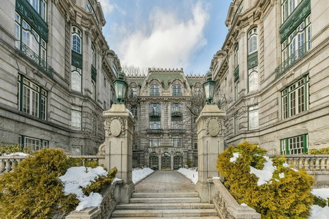 The historically significant Stoneholm is Brookline's finest instance of French Renaissance revival architecture. Enter a grand round foyer leading to a dramatic corridor that awaits display of your personal art collection. With soaring ceilings, dazzling chandeliers, and deep crown moldings and casings, this completely updated flat is a sophisticated combination of classic detail and modern design. The luxurious eat-in kitchen with quartz counters and first-class appliances leads into a bright, south-facing formal dining room with a marble fireplace and handsome pocket door. With a magnificent living room, this condo is an entertainer’s dream: intricate wood paneling and marble fireplace give it a sense of grandeur not often found in newer construction. There are three spacious bedrooms with towering windows and ample customized storage, two with en suite bathrooms. In-unit laundry, two easily-accessible storage units, and two off-street parking spaces round out this refined space.