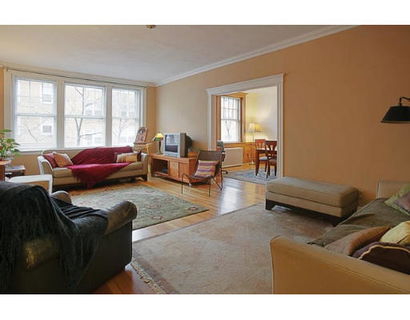 Gracious floor thru home in Brookline. Over 1800 Sq. ft. Features 3 Bedrooms, 1.5 baths. Large eat in kitchen. Foyer entry way. Oversized living room, opens to a formal banquet size dining room. Wonderful large windows, and hard wood floors thoughout. High ceilings and molding. Washer and dryer in unit. Assigned parking. Ability to rent a 2nd car space. Conveniently located to T, shops, restaurants, school.