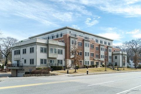 Perfectly situated third floor corner unit at Hammond Pond Place Condominium, a 10-year young 27-unit luxury building located just steps from Route 9 / Chestnut Hill shopping, dining, movie and outdoor recreation / activity ... This 3rd floor corner unit has abundant windows on two sides and sliders from living / dining to private terrace, allowing natural light to stream in ... the 1000+ sq ft terrace adds enormous and flexible outdoor space to the 1500+ sq ft unit, gives it a unique expansive and open feel ... many upgrades include 2019-2021 kitchen cabinets and GE Cafe appliances, quartz countertops ... top-of-line 2022 Lochinvar boiler for high-efficiency heat and hot water ... breakfast bar with seating for four plus large 18 x 14 dining area ... 2019 remodeled master bath (marble) and guest bath (Porcelanosa) ... well-run professionally managed elevator building, very reasonable condo fee, fitness/exercise room, two-car parking in heated garage, private storage ...