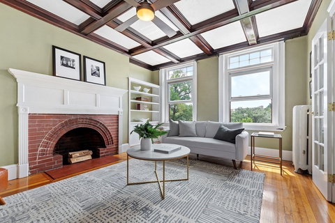 Enjoy the detail and charm of this stunning, sunny 2 bed in lively Washington Square. Nine oversized windows let you unwind gazing over treetops at beautiful sunsets, and you can you curl up next to the working wood-burning fireplace when cold winter months come around. Built-in bookcases offer you room to showcase your treasured belongings and keepsakes. The main bedroom has a bonus room that can act as an office, nursery, or walk-in closet. The other bedroom, with gracious bay windows, is a flexible space able to serve as a dining room. It joins the living room through lovely French doors, a perfect space for entertaining. Be pleasantly surprised by a huge, private storage room in the basement. This unit gives all the convenience and space you are looking for and more. Seconds to the T, tennis/basketball courts at Driscoll School, and wonderful shops and restaurants. Welcome home.
