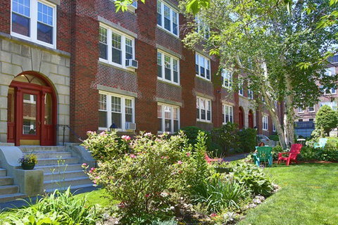 This wonderfully located two bedroom, Coolidge Corner home has generous rooms and lots of windows overlooking a lush garden courtyard. With an updated kitchen that includes a washer/dryer, there's also a door to your private back porch. There are hardwood floors throughout the oversized living room, dining room and adjacent home office/den as well as the two sunny bedrooms. The bathroom has been redone with porcelain and pretty white fixtures. Basement storage. Rental parking available.