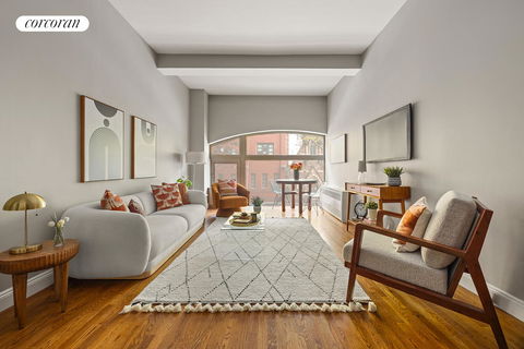 In the heart of Brooklyn Heights, this elegant oversized one-bedroom residence radiates charm and character, framed by historic arched windows and delightful views. Apartment 2D features a classically renovated kitchen with custom white cabinetry extending to the ceiling, marble subway tile backsplash, sleek stainless steel appliances, Caesarstone countertops, and classic black-and-white marble flooring. Thoughtfully designed for both form and function, ...