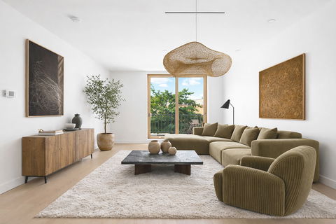 Crowning 19 North Henry Street, a floor-through penthouse duplex offering a rare level of privacy, scale, and indoor/outdoor lifestyle. Accessible via an elevator exclusive to the residence, the home spans 1,407 square feet across two levels. With three bedrooms, two bathrooms, and a versatile upper-level area ideal for an office or studio, the residence balances comfort with ease of use. Elevated finishes underscore the level of craftsmanship throughout the apartment, including wide-plank white oak flooring and solid wood-framed Pella windows. Smart lighting, secure remote-access entry, and an in-unit LG washer and dryer further enhance the luxury experience. The main level is made for livability and entertaining, featuring expansive living and dining areas that flow seamlessly into a modern chef's kitchen. Custom Italian Stosa Cucine cabinetry is paired with Calacatta quartz countertops, integrated Fisher & Paykel appliances, and a Bertazzoni Professional Series gas range-balancing measured design with everyday functionality. Oversized windows on both exposures flood the airy, well-proportioned layout with natural light, enhancing the residence's open feel. The generously sized bedrooms are thoughtfully separated from the residential area, offering flexibility for guests, a work-from-home office, or evolving needs. The two full bathrooms are finished with refined tilework and custom floating vanities, delivering a calm, spa-inspired experience. Three private outdoor spaces totaling 1200 square feet extend the living experience beyond the interior, creating multiple settings for dining or quiet moments outdoors. The terrace tops the residence, with sweeping panoramic city views, complete with a fully equipped outdoor kitchen, grilling station, and a built-in pizza oven-an exceptional setting for both gatherings and everyday indulgence. A private storage unit adds valuable convenience. Set atop an intimate five-unit boutique condominium in Williamsburg, the penthouse is surrounded by cafés, restaurants, galleries, and music venues, with easy access to the L and G trains connecting you seamlessly to Manhattan and beyond. Make your appointment to tour the residence today. The complete terms are in an Offering Plan available from Sponsor. File No. CD25-0117. Equal Housing Opportunity.