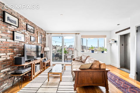 Designer-Renovated PH with Three Outdoor Spaces & Skyline Views. Welcome to this bright one-bedroom home, where luxury meets function. Located on a tree-lined Spencer Street, this top-floor gem offers unobstructed views of the Manhattan skyline and sunsets from your living room. As seen in Dwell, the chef-inspired kitchen is a culinary dream. Equipped with premium Cafe appliances, a wine fridge, custom cabinetry and unique floor tiles, it’s as beautiful ...