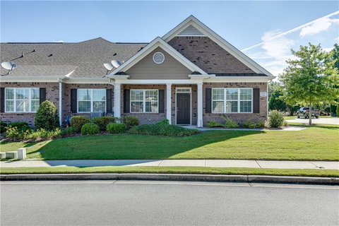 Welcome Home to this immaculate stepless 3 Bed, 3 Bath in the sought after 'The Orchards at Park Ridge, an Active Adult 55+ Gated Community. This open concept, all brick home features a covered sitting front porch. Interior boasts tons of natural light, tall ceilings, hardwoods through main level open areas with carpet in bedrooms. The gourmet kitchen features granite counters and stained cabinets and is open to the family room, dining room and additional flex/office space. The primary bedroom features a trey ceiling, en suite bathroom with dual vanity granite counters. walk in shower and walk in closet. A secondary bedroom is also on the main level and adjacent to a second full bath on main level. An upstairs loft features another oversized secondary bedroom, a full bath and walk in attic access. Located just ~2 miles off of I-85 on Hamilton Mill Rd, this home is close to Mall of Georgia, grocery stores, restaurants, and shopping. HOA fees include all exterior maintenance, full landscaping including irrigation, termite bond, trash removal, a clubhouse with a saltwater pool and fitness center.