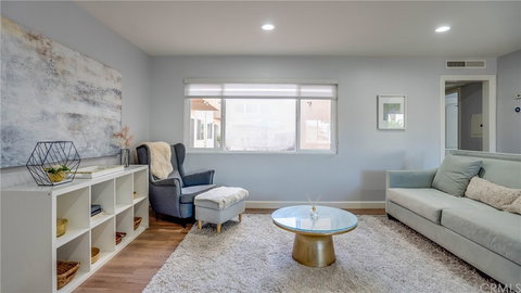Gorgeous turnkey corner unit in the heart of Burbank! This 2 bed 2 full bath, single level, 1,163 sq ft unit has been tastefully renovated from top to bottom. Renovations were completed with permits spring of 2021. From the moment you walk in you will feel at home with the warm luxury vinyl plank flooring throughout, new dual paned windows that flood the home with natural light, sparkling white marbled quartz countertops and new stainless steel appliances, not to mention the fully remodeled bathrooms! The open kitchen and dining room is perfect for intimate family dinners or a large celebration. The bonus room can serve as a kids play-room, homeschool classroom, gym or office, it even has a private balcony. Each bedroom is spacious and roomy with plenty of closet space. The hallway has large cabinets for all your storage needs. This special unit includes its own private garage entrance. The building includes controlled access, a pool, spacious outdoor patio and community laundry with low HOA. Don't miss out on this charming gem!