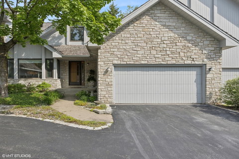 Oak Creek Club townhome with main level primary suite is remodeled and ready to be lived in! This secure, gated community with 24/7 security guard at entrance offers easy living and the ability to come and go with confidence. The bright white eat-in kitchen with stainless appliances and high ceilings is perfect! The main level living area with gas fireplace and two story ceilings, built-ins and combined dining room provides so much living space. The main level primary bedroom is not only spacious itself, but also includes a bonus sitting room and huge primary bath with large walk-in shower. On the second level is a flexible loft area with built-in shelving and two generous bedrooms and shared bathroom. In the FULL basement you'll find the recreation room, an office and another bedroom, plus TONS of storage! Walk out the back to a beautiful, private oasis among gorgeous greenery and landscaping that makes lounging on the deck a pleasure. Close to the Burr Ridge shopping area and great restaurants and to the I-55 and I-294 highways, this location is great for commuting to work and both O'Hare and Midway airports. Professional photos will be taken and available Friday May 17.