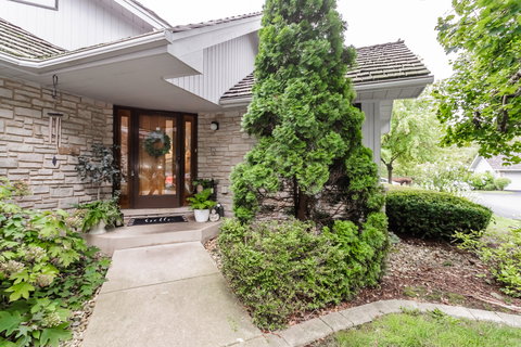 Beautiful townhouse in sought after Oak Creek Club!! Prime wooded setting with serene views. Gated community for extra security. The entrance is spectacular with circular stairway, very impressive. Living room features a two story stone fireplace and adjacent dining room. The owner added hardwood flooring and added new counters. New carpeting. First floor master with spacious bathroom. Another first floor bedroom and full bath (previous owner covered the shower in the half bath with drywall, still behind the wall). Half bath and laundry on first floor. The English basement is awesome!! Recreation at it's best!! Huge stone fireplace and large bedroom with full bath. 21x21 storage room on LL is tiled and has a large cedar closet & lots of built-in shelving. DBL oven, 2023; dishwasher 2021; carpeting replaced 2024, one new AC 2023. Extensive Trek deck. Great location near Burr Ridge Center, restaurants and shops and I55.