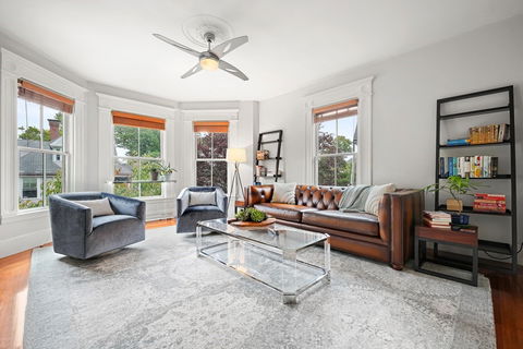 Two bedrooms plus bonus study with ample storage in a beautifully renovated, very bright, floor through. This converted Mansard Victorian is nestled on a quiet street between Harvard, Central and Innman Squares. Enjoy the spacious, open living spaces with 10 ft ceilings drenched in sunshine. A bonus office area adjacent to a private front porch is the perfect space to work from home. The kitchen features new stainless appliances, granite counters, large peninsula and a pantry off of the mudroom. Two large bedrooms: the primary features an en suite bathroom and ample closet space. A lush common outdoor space is enveloped by updated landscaping for outdoor entertaining.