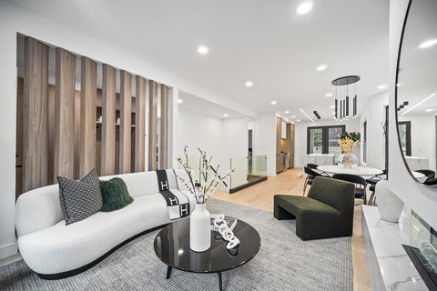 A Treetop Group project. Set along a quaint bricked street, the above ground entrance to 19 Leonard is private & tucked away from public eye. One enters to an unobstructed view of the living area; ceilings & plenty windows creating a bright & airy abode. A fireplace set within the gentle curve of a turret living room beckons the cozy comfort of quiet conversations. Chocolate-hued wood panelling, deliberate placement of warm lights & elemental textures dress this unit; the kitchen a key showcase of such elevated interior design. Here, form meets function with integrated panel Thermador appliances, an oversized kitchen island with bar seating & deep-set cabinets. Adjacent access to the private deck & yard (EUA) perfect for entertainment & alfresco dining on good weather days. A glass-framed stair well draws one to the lower level where a wet bar & two additional BRs await. From bathroom radiant heat flooring to custom shelving & integrate stair lighting, enjoy little luxuries everyday!