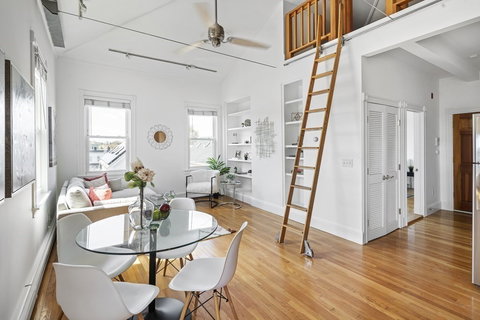 This crisp, light-flooded, and stylish condo offers the purest expression of our modern-day live/work model. Featuring a voluminous, open floor plan with a lofted flex-use office space, this 1 bed, 1 bath condo occupies the optimal front corner unit of the top floor. Expansive kitchen with plentiful workspace and storage, granite countertops, and updated appliances perfectly fit our current epoch of home cooking. Elevating the every day with custom-built-ins and generously proportioned windows that frame long Southwest views of the city beyond. Additional amenities include jacuzzi tub, in-unit washer/dryer, basement storage, and off-street parking. This stunning listing offers the purest expression of urban living with the cafes, restaurants, public transit systems and amenities of nearby Inman and Union Squares. A perfect neighborhood for urban dwellers looking to put down roots.