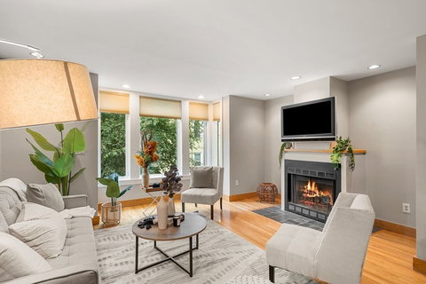 Rare to the market! Welcome to this beautiful, freshly painted three bedroom, two-bath 4-level townhouse on a leafy green street minutes to Harvard Square. This home is set back from the street and features a garage space with direct access to private garden, bedroom and bath on the entry level. The 2nd level features an open floor plan that includes the galley kitchen with stainless steel appliances, dining area and a wood-burning fireplace living room with tall bay windows basking in the natural light. 3rd floor includes a spacious master bedroom with soaring lofted ceilings and an additional bedroom. The ceramic tiled bathroom on the 2nd floor serves as an ensuite and common bathroom. The top floor study area would make a great home office and has access to the private roof deck. This beautiful townhome checks all the boxes and located just minutes to Red Line MBTA, Cambridge library, shops, restaurants and markets! Professionally managed and pet friendly association. Easy to show!
