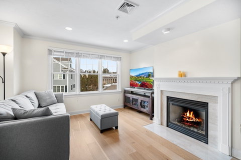 Welcome to 23 Maple St. Unit B, at Grover Estates! This spacious, bright 2 living level penthouse offers a prime location right in the heart of Canton Center, close to the commuter rail, public library, town hall, Washington St. shops, restaurants, and more. Open living, dining, kitchen area on the main level w/ new appliances, induction range, young hardwood floors, gas fireplace, recessed lighting and a slider to a private balcony. Primary bedroom has a dual vanity bath and walk-in closet. Main living level is also home to the in-unit laundry, guest half bathroom w/ tons of closet space and storage in the unit. Second level features a lofted space, full bath w/ dual vanity and another large bedroom w/ walk-in closet. Attached, private garage and basement storage unit included! Condo fees include gas, water/sewer, heat, trash, master insurance, snow removal, exterior maintenance, landscaping, and fire alarm/sprinkler system. There is only 1 other unit in this building, very private.