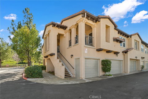 Welcome to 17945 Lost Canyon Road in beautiful Santa Clarita, California. This stunning 2-bed, 2-bath condo offers an inviting open concept design spanning 1022 square feet. Enter into the spacious great room boasting a charming stone fireplace with a custom wood mantle, gas fireplace, and oversized tile floors. French doors lead to a covered balcony/patio with picturesque hillside views, perfect for morning coffee or evening relaxation. The open floor plan seamlessly connects the large dining area with the living room and kitchen. Enjoy maple cabinets, granite counters, and a breakfast bar for casual dining. The primary bedroom features dual walk-in closets and an attached bathroom with mirrored wardrobe doors, dual sink vanity, and a tub/shower combo. Convenience is key with a stacked washer and dryer near the bedrooms, while the secondary bedroom offers its own spacious closet and adjacent bathroom. There is an attached 1 car garage as well as an additional one car designated parking space. This gated community offers easy proximity to freeway, schools, and shopping centers. Enjoy resort-style amenities including a pool, spa, tennis courts, and lush landscaping with a pond and waterfall and so much more. Make this serene oasis your new home!