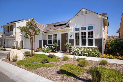 The Club at VERANO-55+ Active Living Enclave! This gated and private community offers residents private roads, an exclusive Clubhouse facility with personal wine lockers, conference room, fitness center with state-of-the-art equipment, sparkling resort style swimming pool & spa, social bar, billiards, bocce ball, and two sizeable BBQ areas. The one-story home presented has a panoramic view of majestic surrounding hills and partial city scene, dramatic ceiling heights of 11.5’, formal dining room, 2 bathrooms and 2 bedrooms. The great room opens to a chef’s kitchen adorned with a large eat-at island, slab-granite countertops, stainless gas range, microwave oven, dishwasher, and refrigerator! A Butler’s Pantry connects the kitchen and formal dining room. A converted walk-in pantry is used as an office space. The entire backside of the home has large beautifully sunlit windows, which allow you to enjoy the stunning views from the kitchen, great room, and master bedroom! Master suite has a private bathroom with double sink vanity, a walk-in tiled shower, and a spacious walk-in closet. The inside laundry room is complete with utility sink, counters, cabinetry, and washer/dryer. Additional amenities include: fully owned solar panels, tinted windows, tankless water heater, tile flooring throughout living space with carpet in the bedrooms. You will enjoy the delightful backyard with its flower beds, redwood planter boxes for growing herbs & veggies, a decorative water feature and patio area with concrete pavers-an ideal space for entertaining. This stunning property has a 2-Bay Garage.