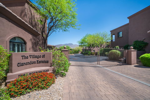 Urban living in Carefree! A very short stroll brings you to unique shopping, dining, farmers markets, art festivals and a calendar full of events. This gently lived in home, located in the heart of town, is an end unit with privacy to the north and windows that interior units don't have. Whip up your favorite dish in this nicely appointed kitchen, with granite, and is open to the Great Room entertaining area. The spacious Master Suite is located on the lower level and has access to the wonderfully vegetated back patio living/entertaining area. Upstairs you will find 2 bedrooms, both with ensuite bathrooms, mountain views and the 3rd bedroom with its own private balcony. Low maintenance is a plus here, as the HOA covers exterior paint, roofing and common area landscape. You need to be here.