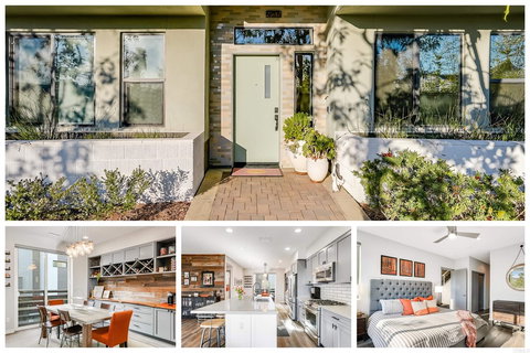 This is not just a home, it's a lifestyle. Spectacular modern, coastal row home with ocean and lagoon views awaits you in Carlsbad Village. Rare opportunity to own a piece of the coastal lifestyle. This 2300 sq ft beauty has it all - configurable custom closets in the master bedroom, 2 full bathrooms and 2 half baths, 2 bedrooms and 3 levels of bright, open concept living. The first floor offers the perfect work/office space with two built-in desks and a murphy bed for extra sleeping capacity. The second floor houses the newly remodeled kitchen, dining and living area. The bedrooms are privately located on the third floor. And if that's not enough storage for you, the two-car garage includes custom shelving and a beautiful custom epoxy floor. This home is located in the heart of Carlsbad, close to all of your favorite dining, shopping and entertainment. You'll love being able to enjoy every sunrise and sunset from your private rooftop deck. This home will not last!
