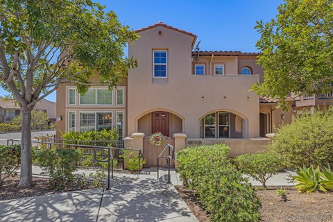 Incredible end unit townhome in Villas de la Costa. 1 of only 3 units built in 2011. Open floor plan that's light and bright. Highly upgraded with many custom features including quartz counters, SS appliances, hickory hardwood and travertine floors, plantation shutters, crown molding, tankless water heater and solar. 3 patios, large master suite with a walk-in closet and spa tub. Top rated schools and close to La Costa Town Square. This model perfect property is move-in ready and the perfect place to call home! Equipment: Garage Door Opener Sewer: Sewer Connected Topography: LL