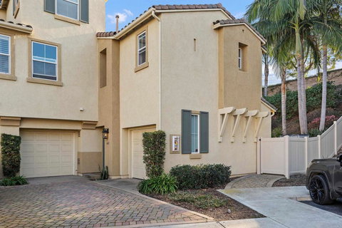 Crafted to perfection, this impeccable dwelling stands as the epitome of pristine model condition. Nestled as an end unit, Plan 2, adjacent to a tranquil common area, within the confines of a Cul-De-Sac, it boasts the distinction of occupying one of the largest lots within Mystic Point. Positioned within a smaller building, housing only three units as opposed to six, it ensures a sense of exclusivity. Revel in the convenience of exclusive access, and relish the solitude with no neighboring units behind or beside. With the ambiance akin to a single-family residence, the property is adorned with lush tropical landscaping, offering a serene retreat. Inside, discover upgrades aplenty, including deluxe cabinets, granite countertops, and stainless steel appliances. The garage is equipped with cabinets for ample storage, while recent enhancements such as upgraded carpeting just two months ago, complement the tasteful 18 X 18 tile flooring and fresh paint throughout. Meticulously maintained, this home epitomizes care and attention to detail. Welcome to a neighborhood defined by the charm of Calavera Hills Complex.